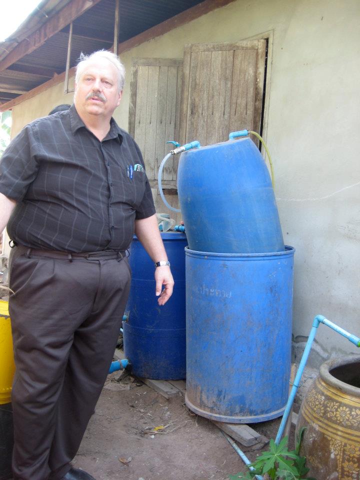 There were probably at least 20 people at this home. They were all so excited to see us. They wanted to show us all around. After working with the patient, they took us behind one of the homes to show us how they make natural gas out of water buffalo poop. They mix it with water in a 50 gallon drum hooked up to another drum by a tube. When the 2nd drum is full, they use it to light their fires to cook with. One poo drum lasts about a year.