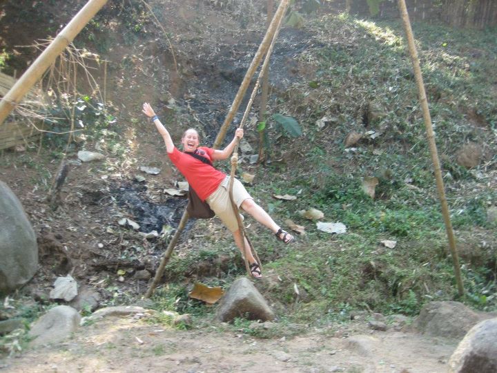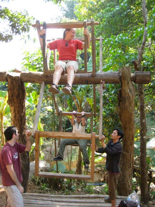 From there you could keep hiking to go to an Akha village. They have a lot of hiking tourists pass through so they have it set up for us. They were selling things they made and drinks. They have two rooms in huts that you can rent for your hotel. I want to do it! We got lucky because it was the grand opening for their village Akha museum! One of the village guys said it was his dream to do, and he did it and did it well. They gave us sprite in a cup made out of bamboo. They gave us a bracelet. We got to go in a house (made all of bamboo). They had tools and things in the house to look at. They had some food that I ate with them. The best part was in the back they had one of those same swings as at the festival and they had a home made little two person ferris wheel. Me and Seekaow got on it. We were the first people on it. It was so much fun. They had weapons like sling shots and bows and arrows you could do target practice with. It was so much fun to get to be there and see their culture and way of life. That was 100%, without a doubt, my favorite part of the entire month. The mountains are just so absolutely beautiful here, so even without the village it would’ve been a great time in the mountains. I went back to the hotel very satisfied with my day. We flew back to Bangkok that night.
